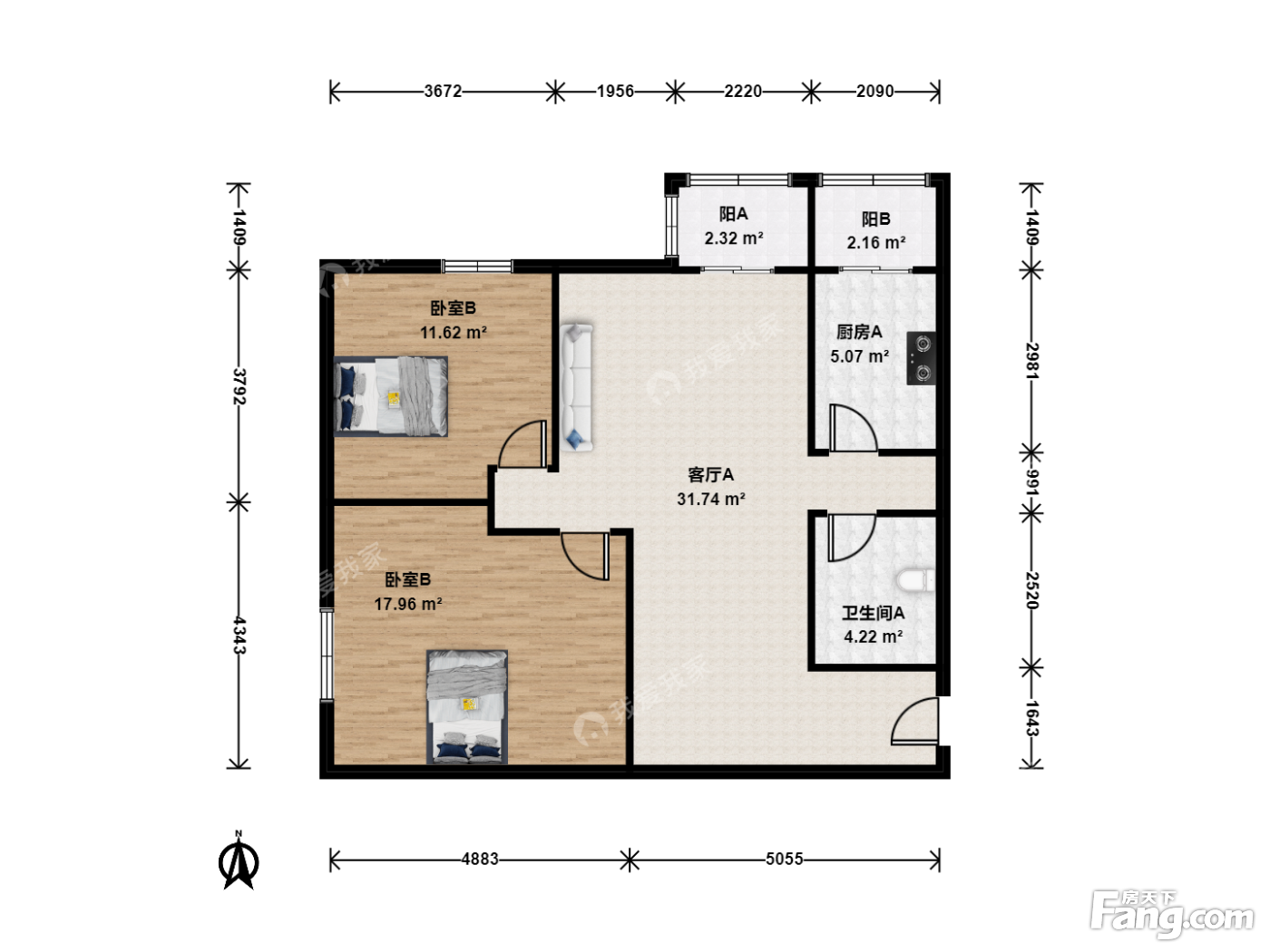 碧波园 2室1厅 东北