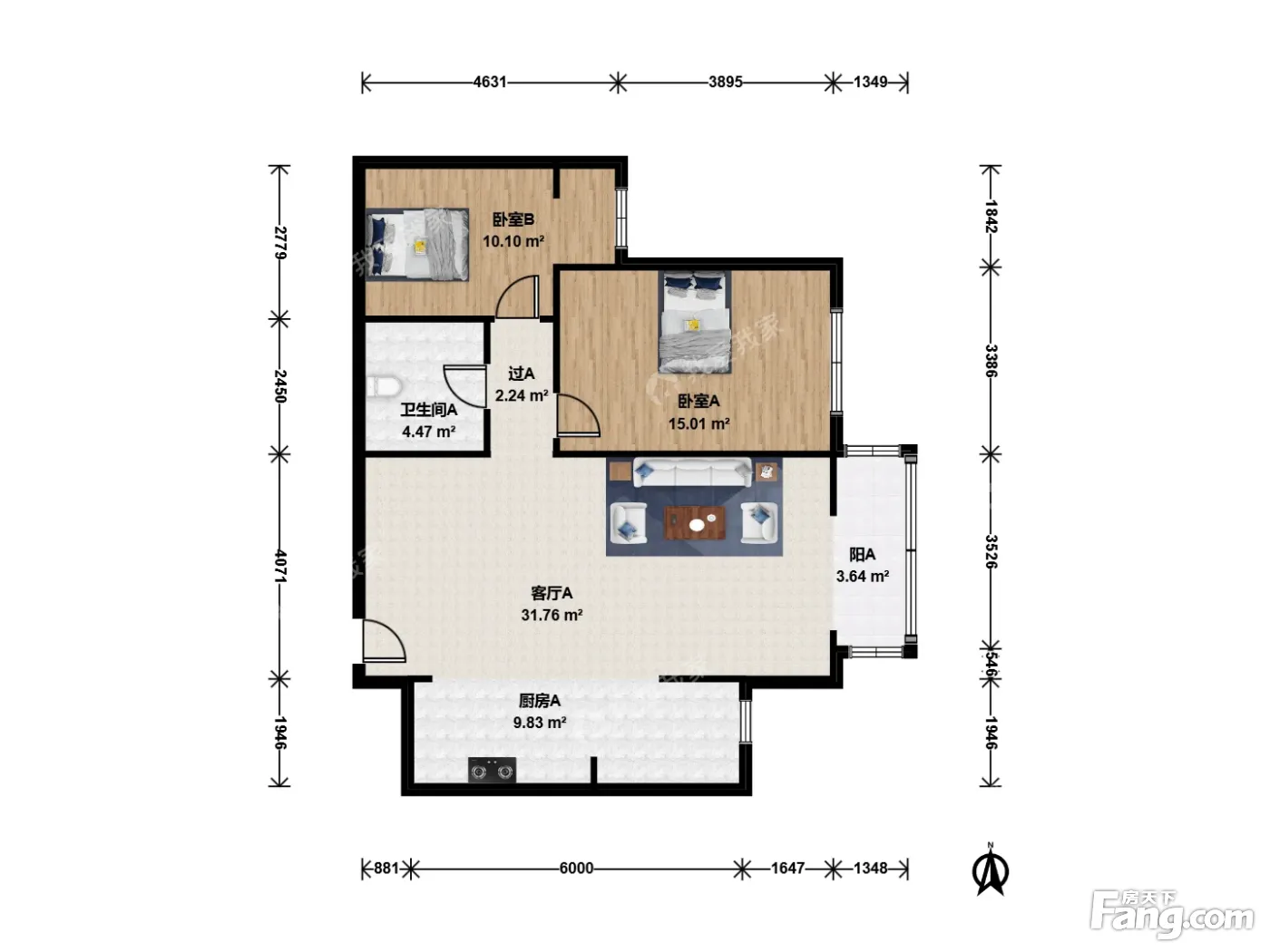 户型齐全,主打客厅朝南,明厨二居