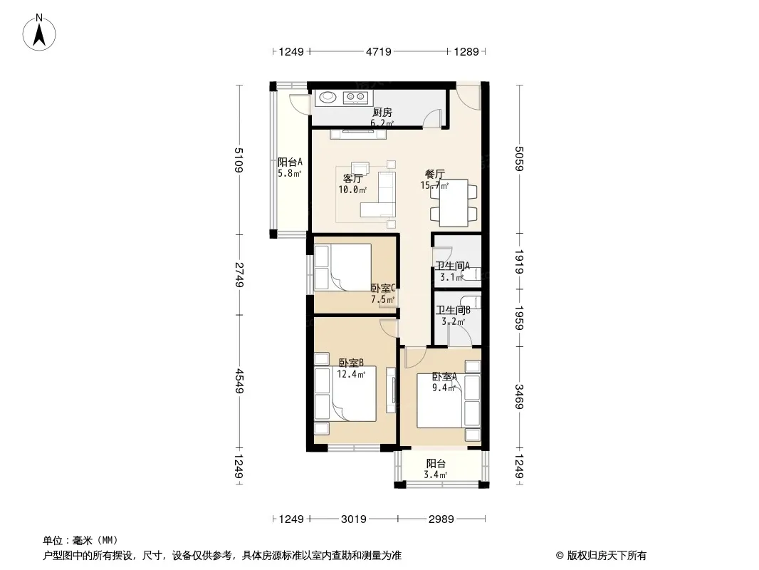 3室1厅2卫