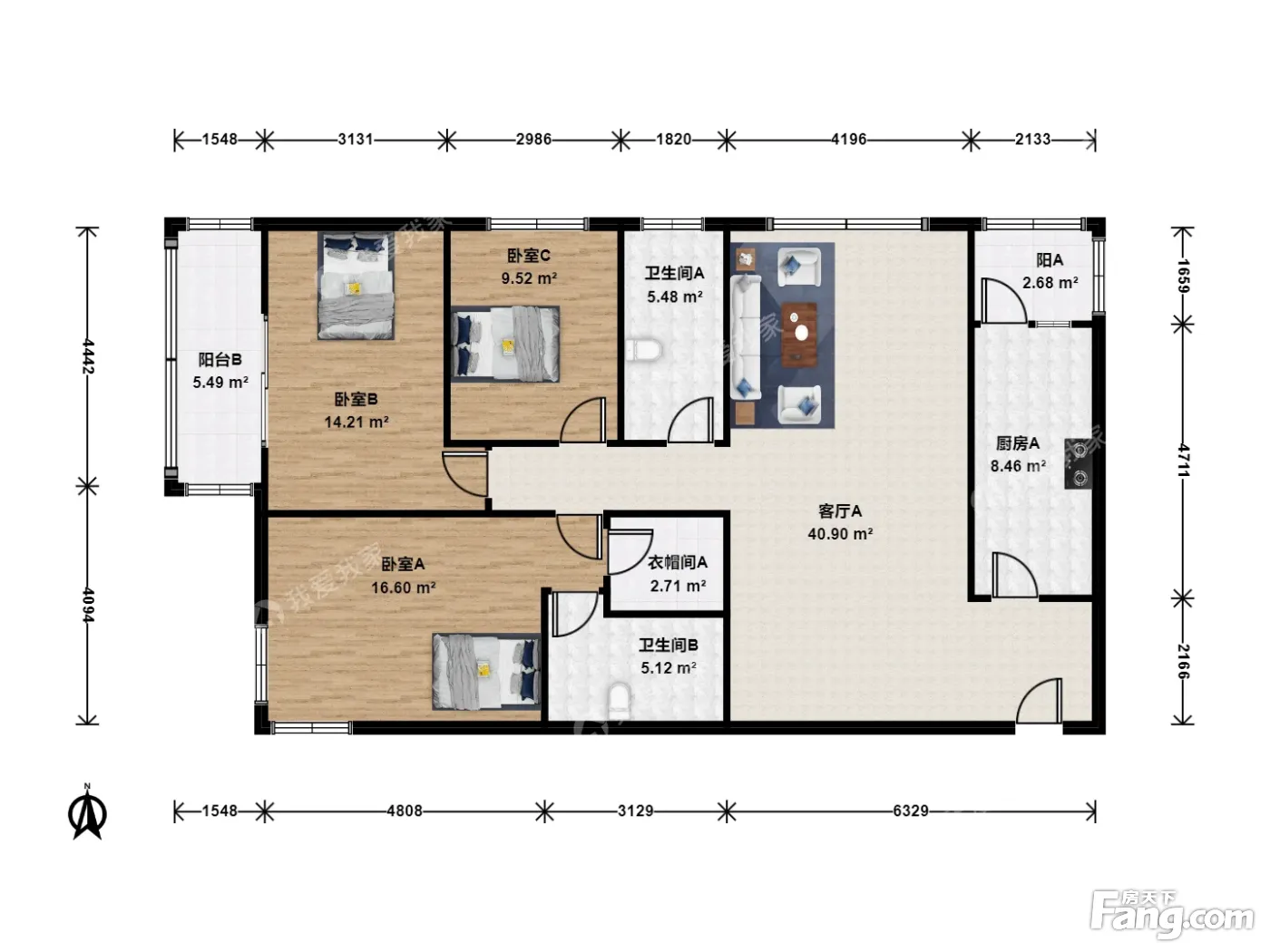 3室1厅2卫