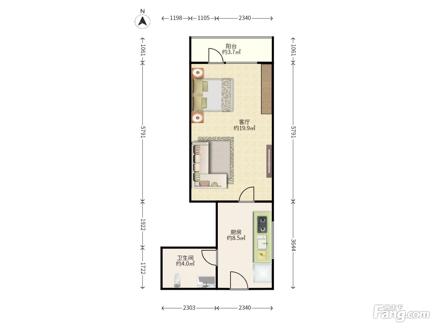 蜂鸟家园 1室0厅 北