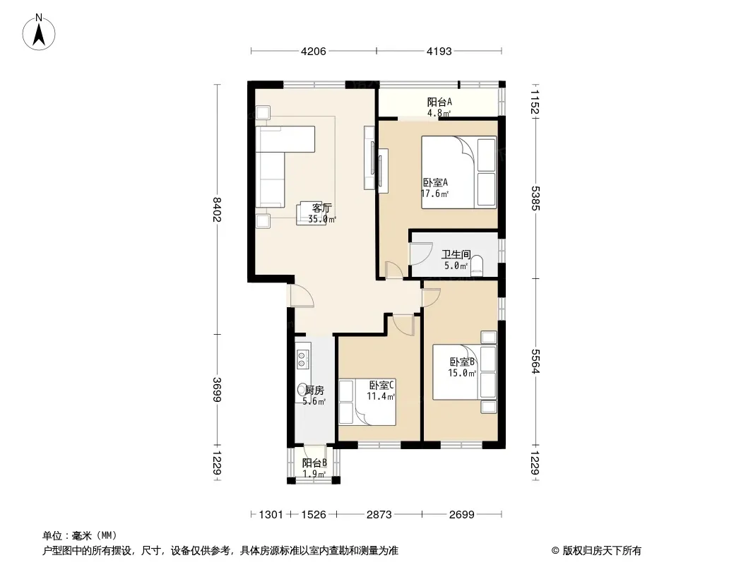 户型齐全,主打户型方正,客厅朝南,双阳台三居
