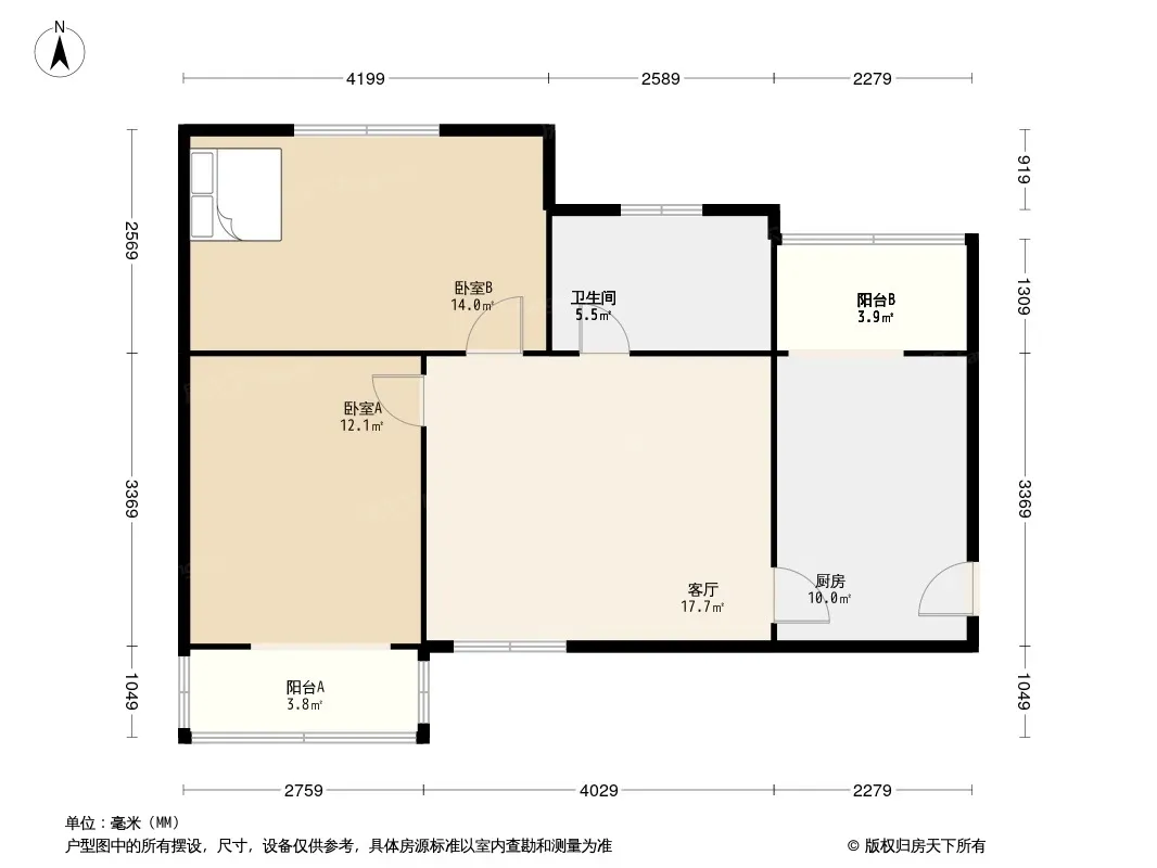 户型齐全,主打明厨,双阳台,主卧朝南二居