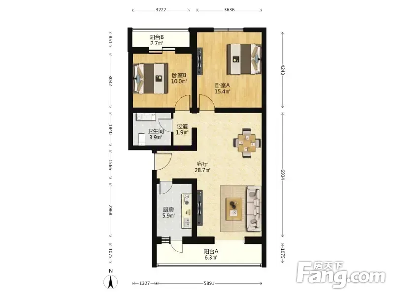 户型齐全,主打户型方正,明厨,双阳台二居