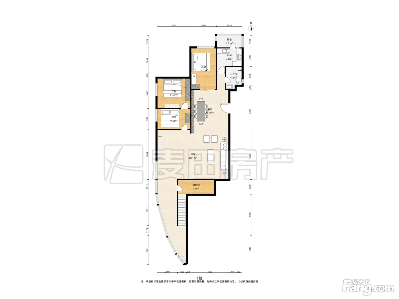 户型方正,客厅有40平米 两个卫生间都是明的 采光视野好