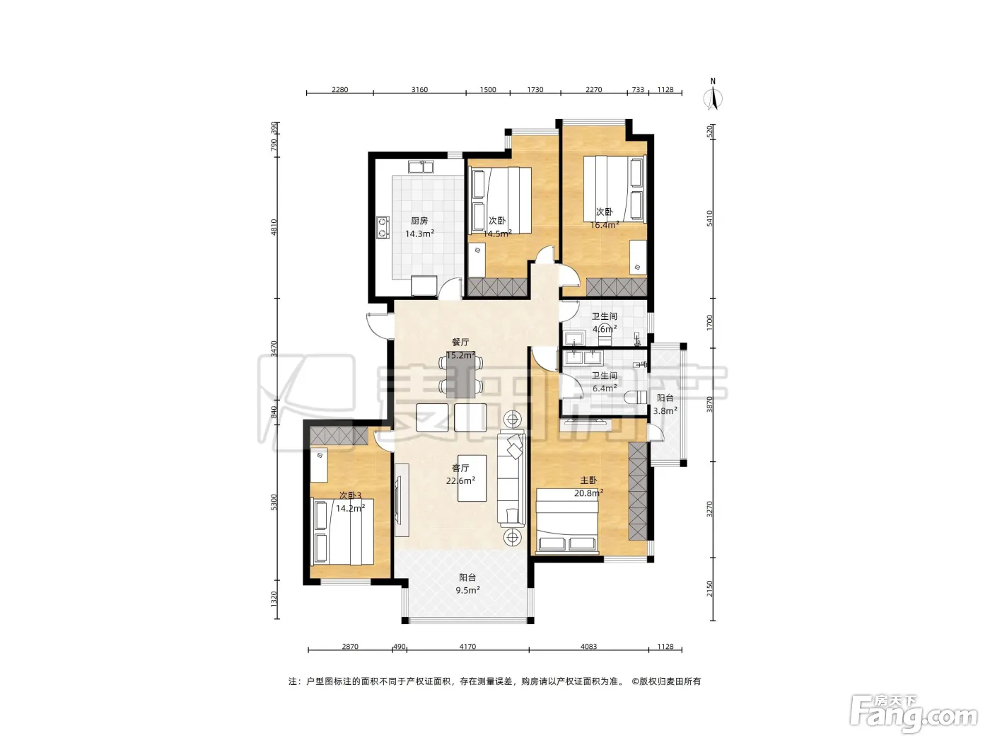 、181平-315平的户型方正,明卫,明厨,双阳台,双卧朝南,主卧朝南的四居