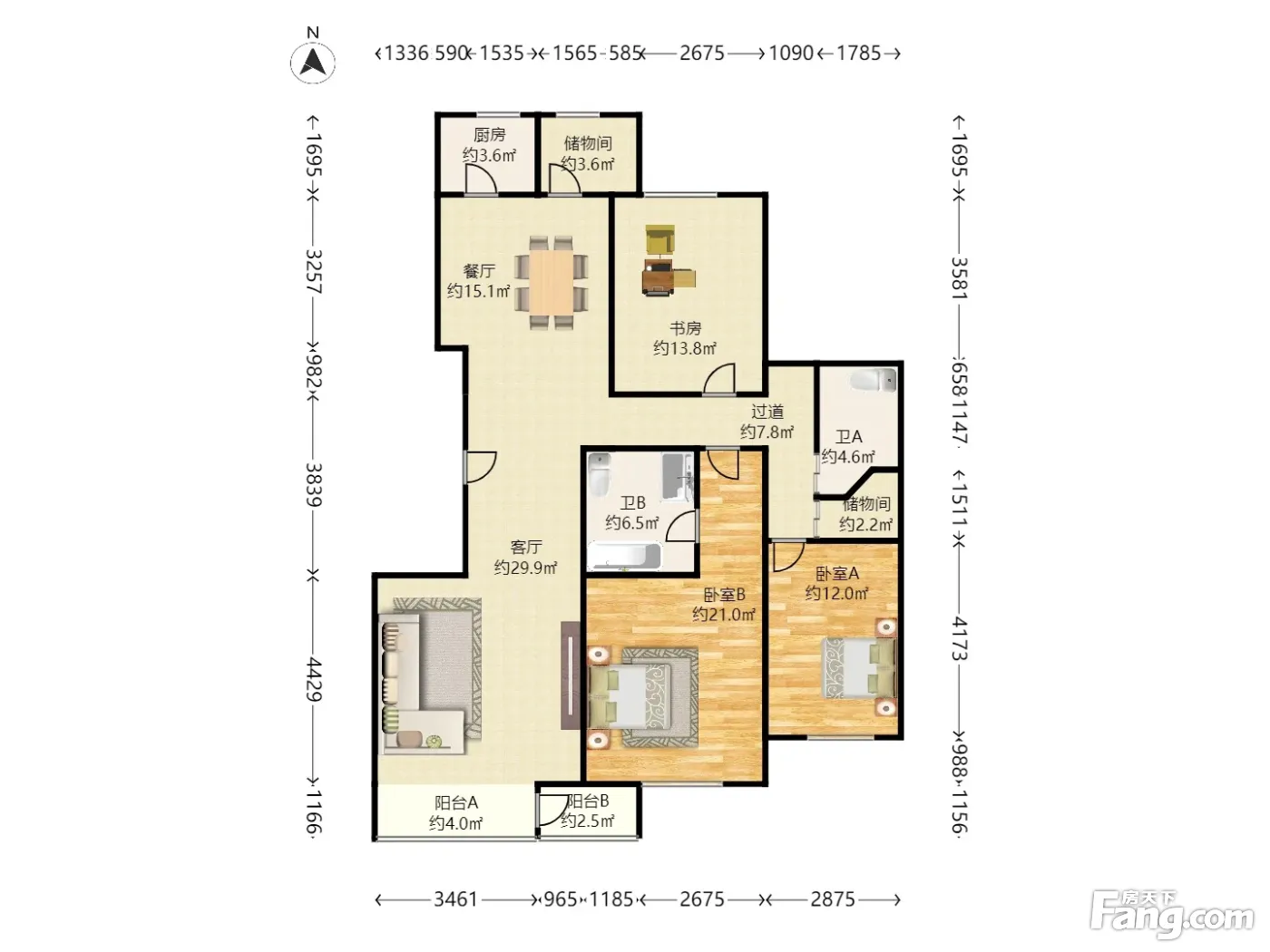 光大水墨风景 3室1厅 南 北