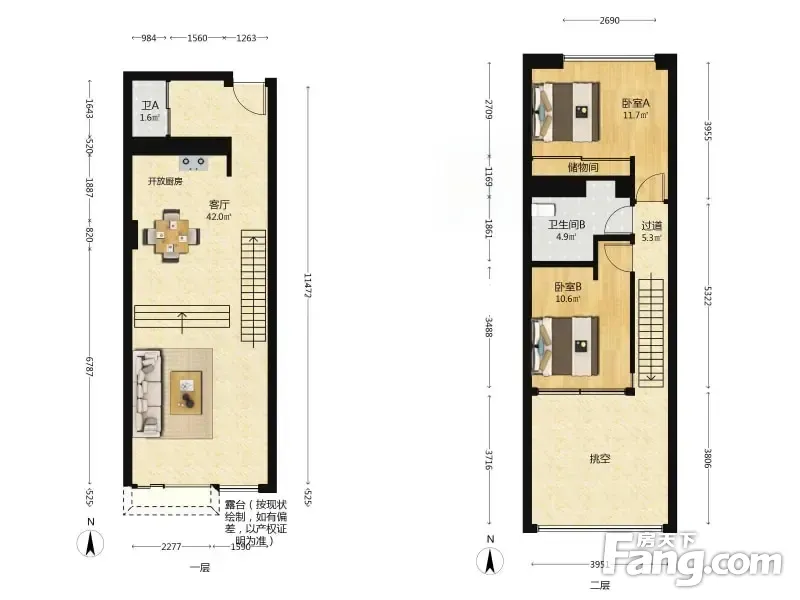 1:南北通透朝向 二室二卫 复式格局 采光足 设计合理 户型介绍:本楼2005年建成,客厅厨房客卫在一层,两个卧室和主卫在二层,客厅部分挑空,落地大飘窗。有的业主客厅挑空部分封起来了,楼上多个功能间,感觉也很不错,可以多样设计 售房详情:业主卖房属于变现换房,没有抵押,现在空置,看房子都很方便,欢迎您随时看房 小区周边有日坛公园 悠唐广场 外交部 司法部 朝阳区政府等机关单位,小区出门即是朝阳门2-6号线地铁换乘,出门150米是东大桥公交总站