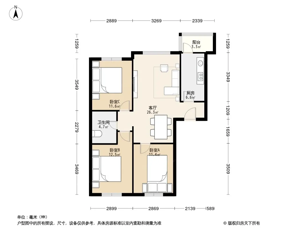 户型齐全,主打户型方正,明厨,客厅朝南,主卧朝南一居