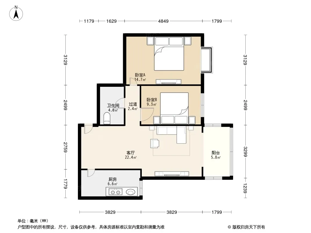 户型齐全,主打户型方正,明卫,客厅朝南,双阳台,主卧朝南二居
