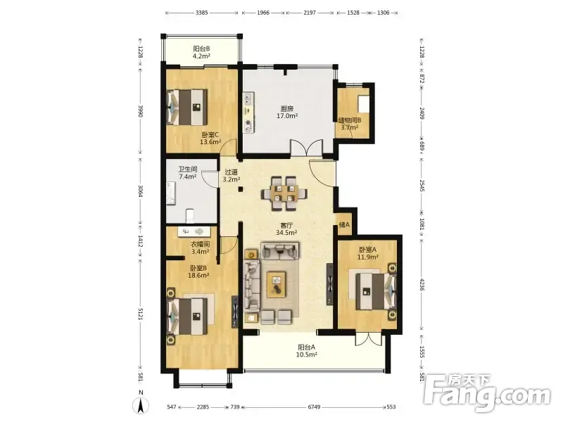 一品亦庄南北通透168平米三居室业主诚意出售