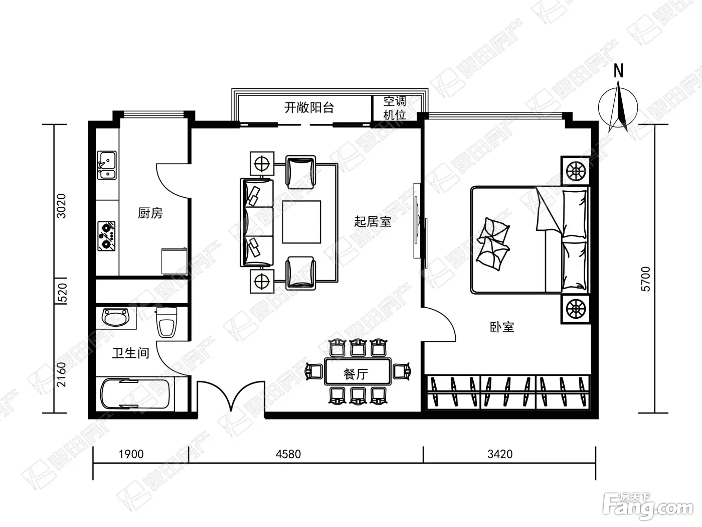 户型齐全,主打户型方正,明卫,明厨,客厅朝南,全明格局一居