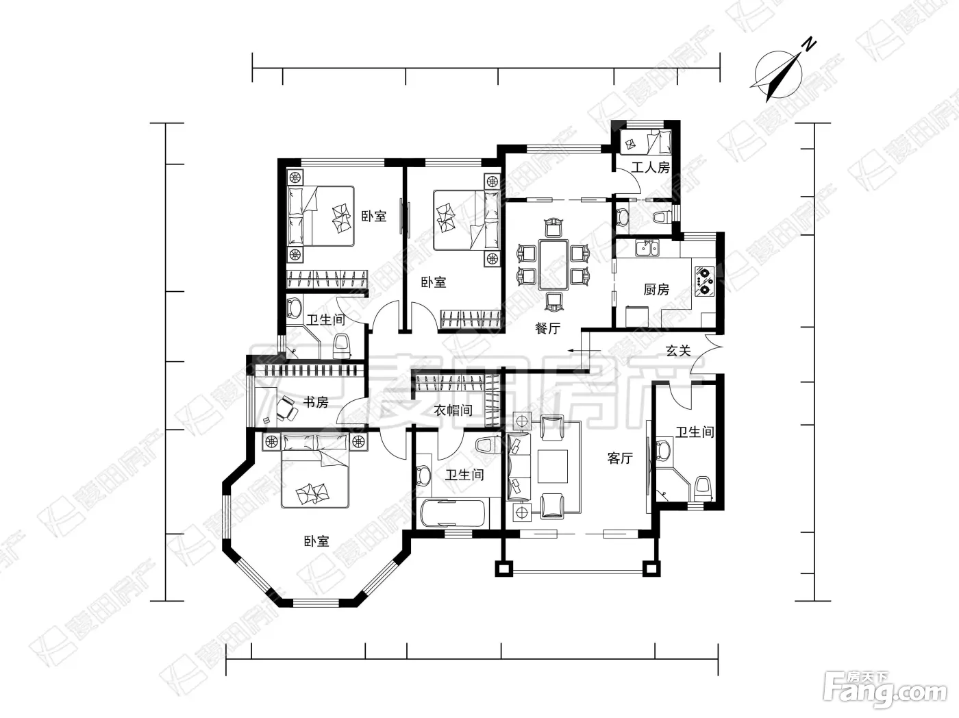 户型齐全,主打户型方正,独立衣帽间,明卫四居