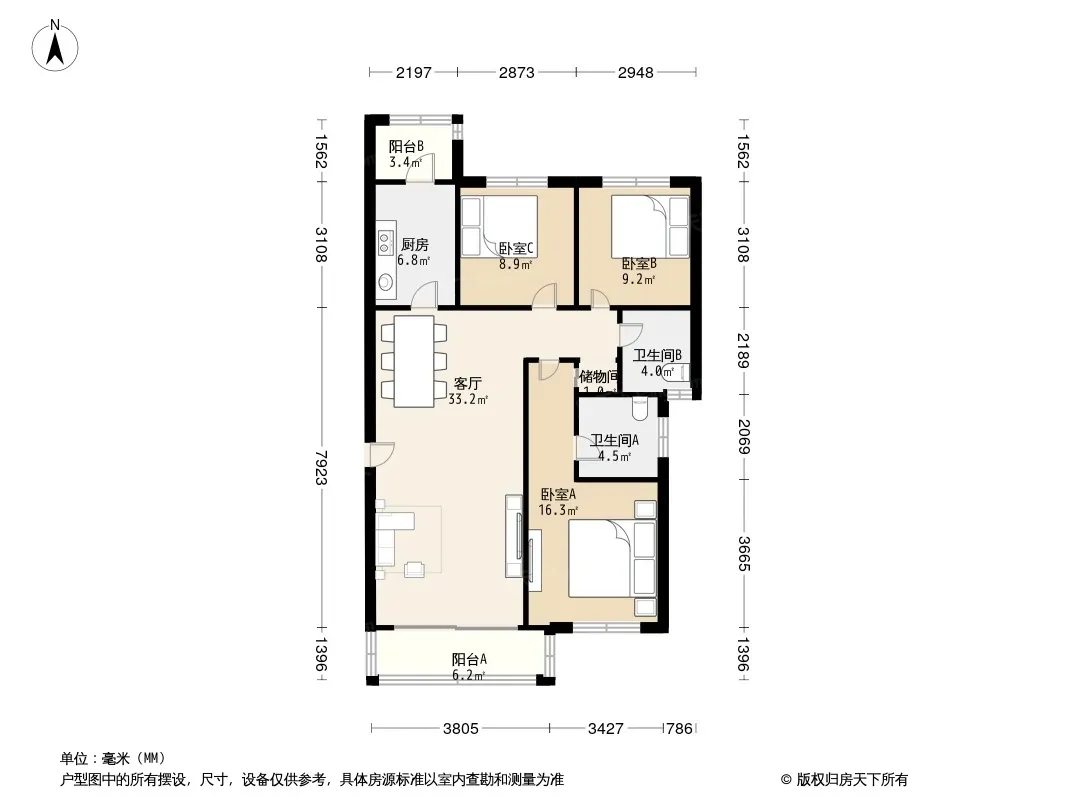 户型齐全,主打户型方正,明卫三居