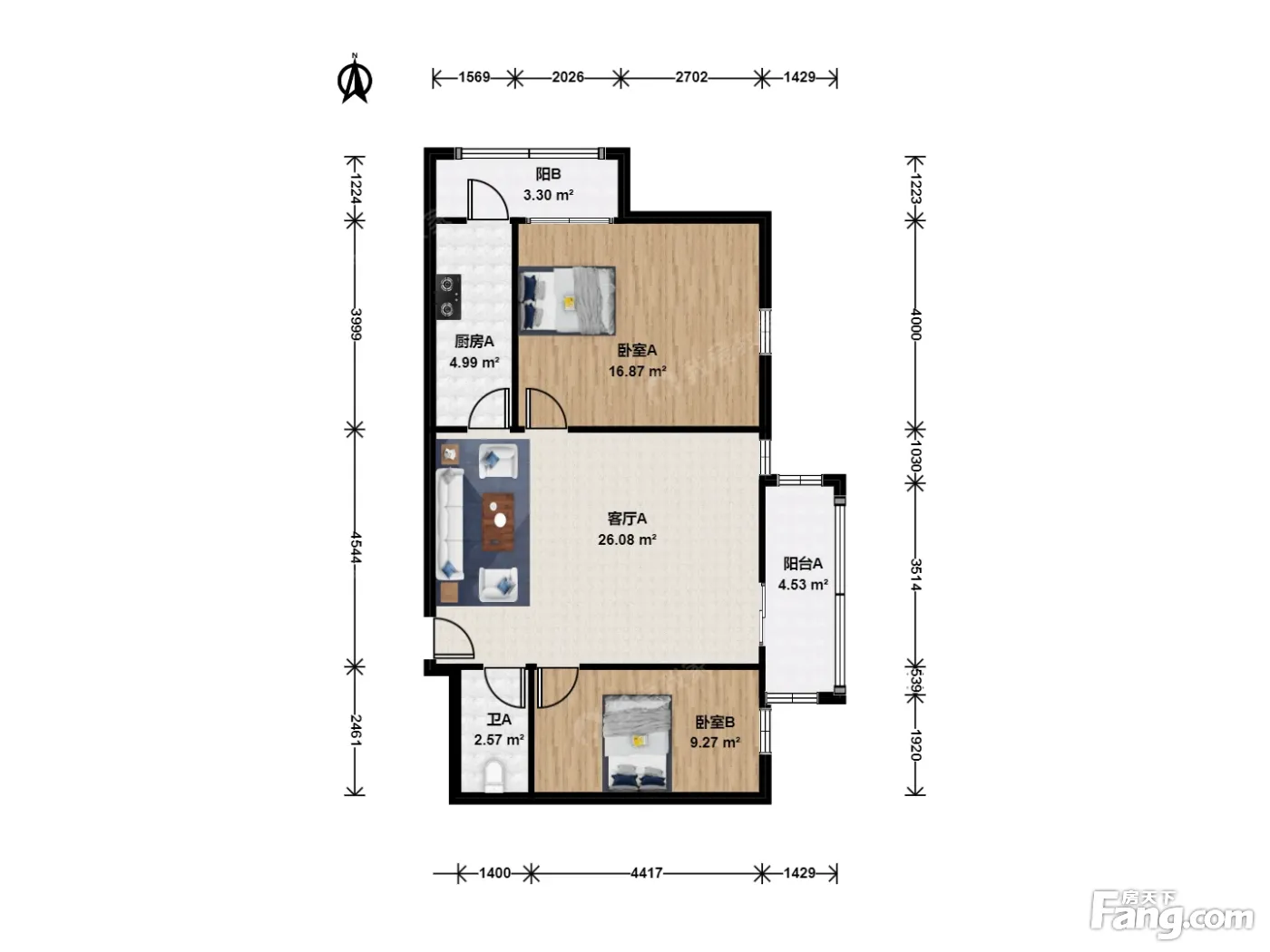 户型齐全,主打户型方正,主卧朝南二居