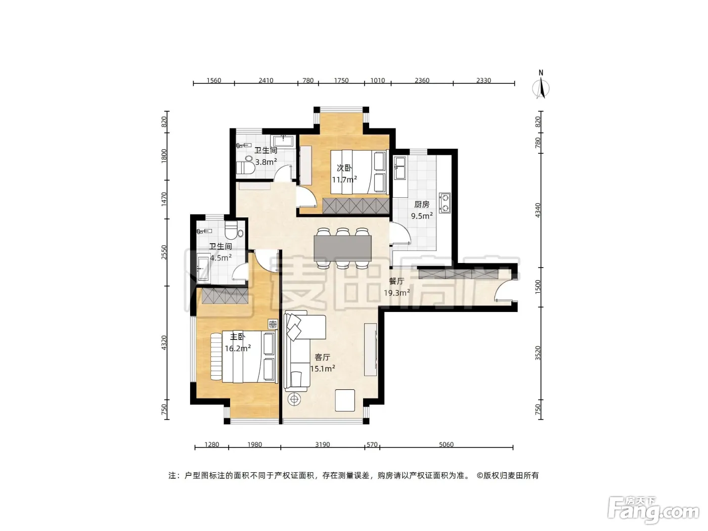户型方正,客厅有40平米 两个卫生间都是明的 采光视野好