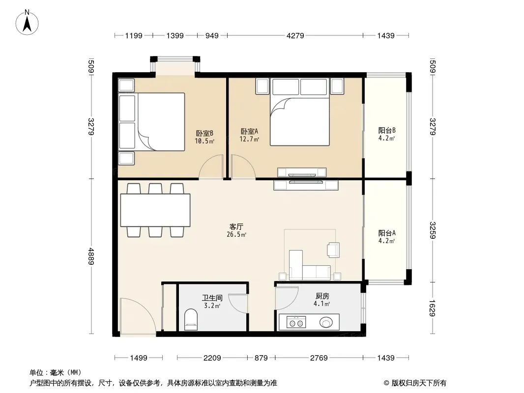 户型齐全,主打明厨,客厅朝南,双阳台二居