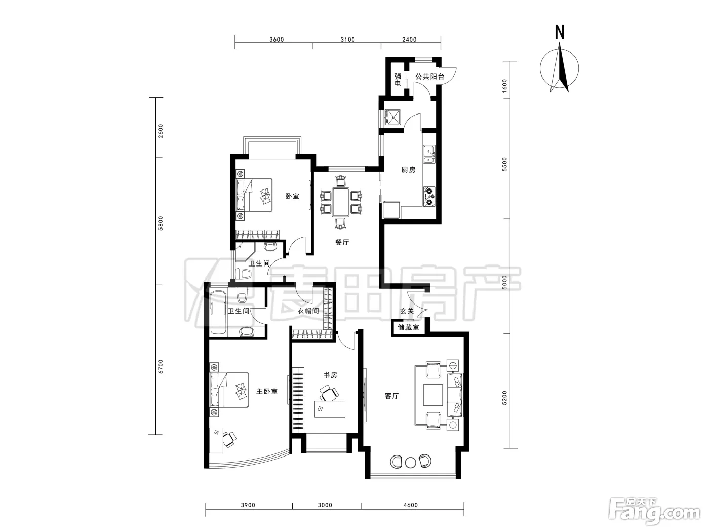户型齐全,主打明卫,独立衣帽间,明厨,客厅朝南,双阳台三居