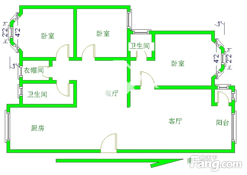 此房三室二厅二卫 户型方正,南北通透。