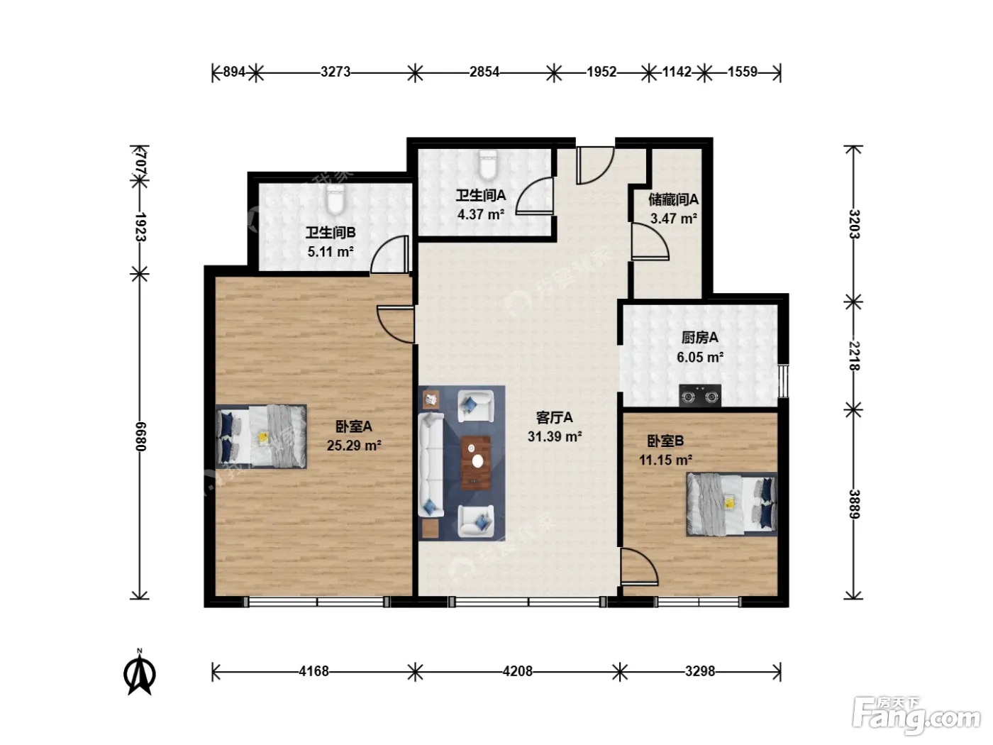 2室1厅2卫