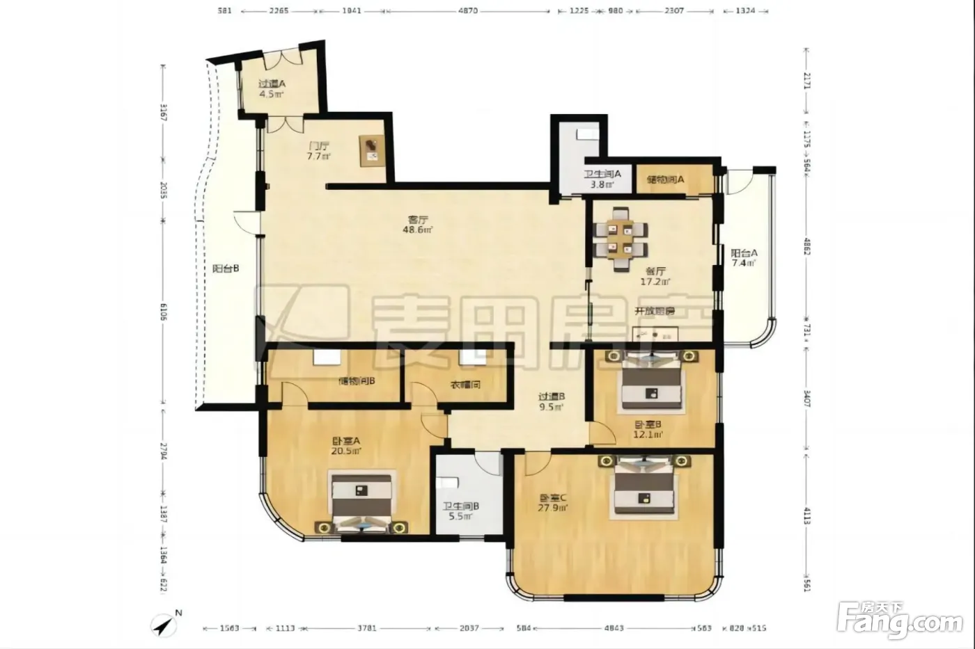 户型齐全,主打明卫,双阳台三居