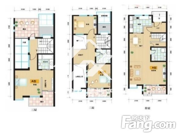 此房联排别墅地上三层 南北庭院。