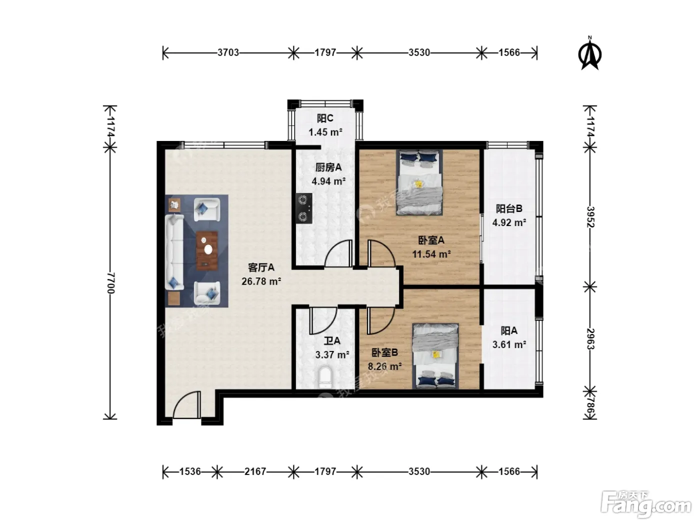 户型齐全,主打户型方正,双阳台二居
