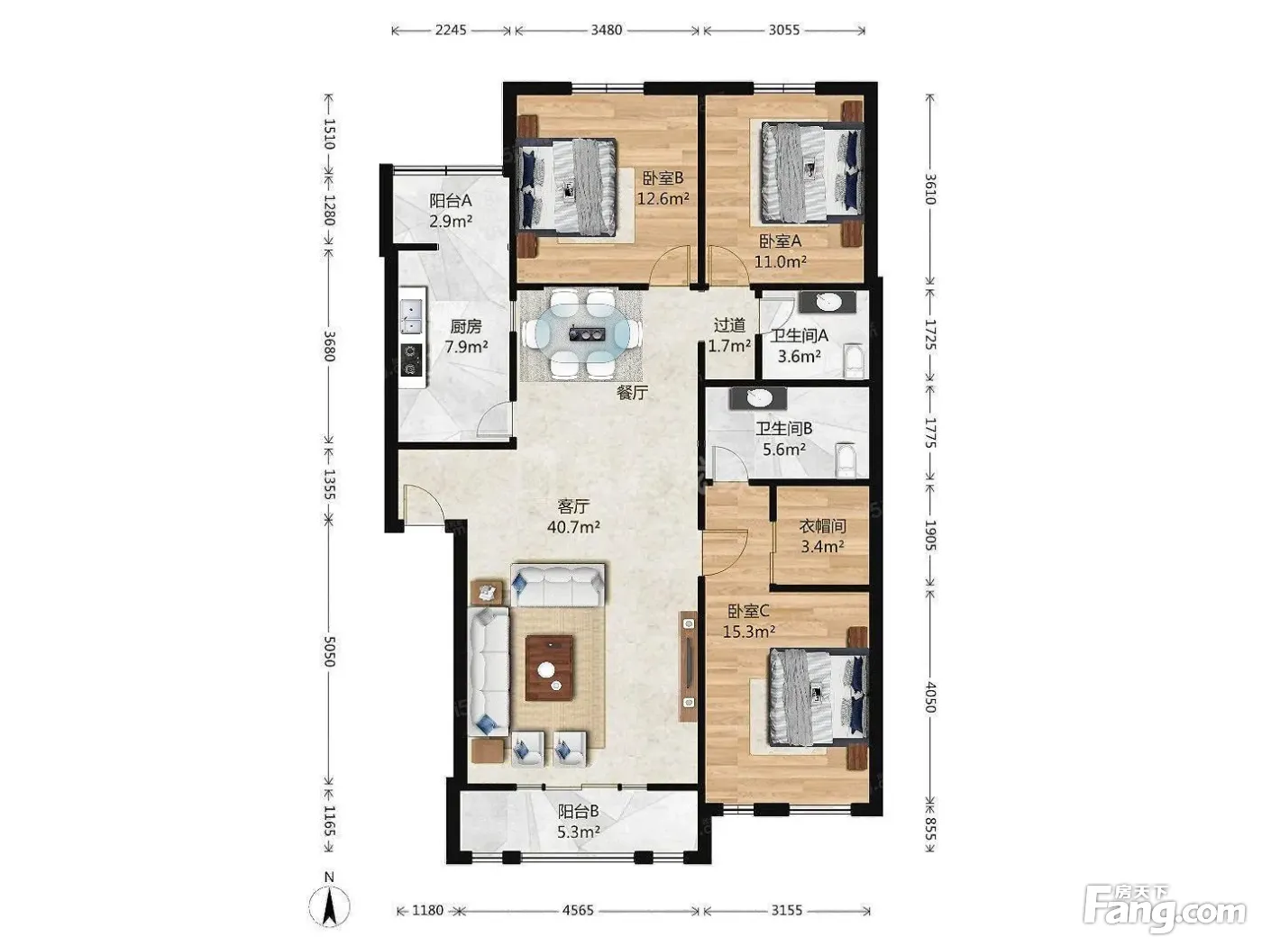 3室1厅2卫