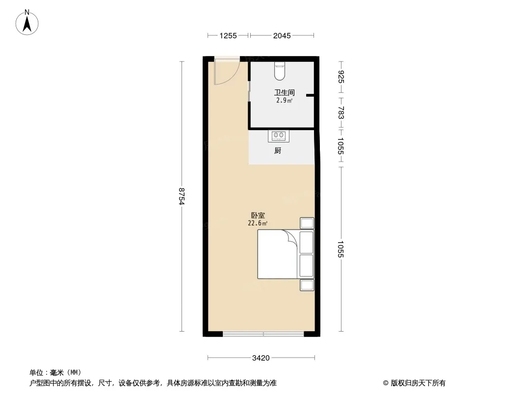 智慧大厦 1室1厅 南