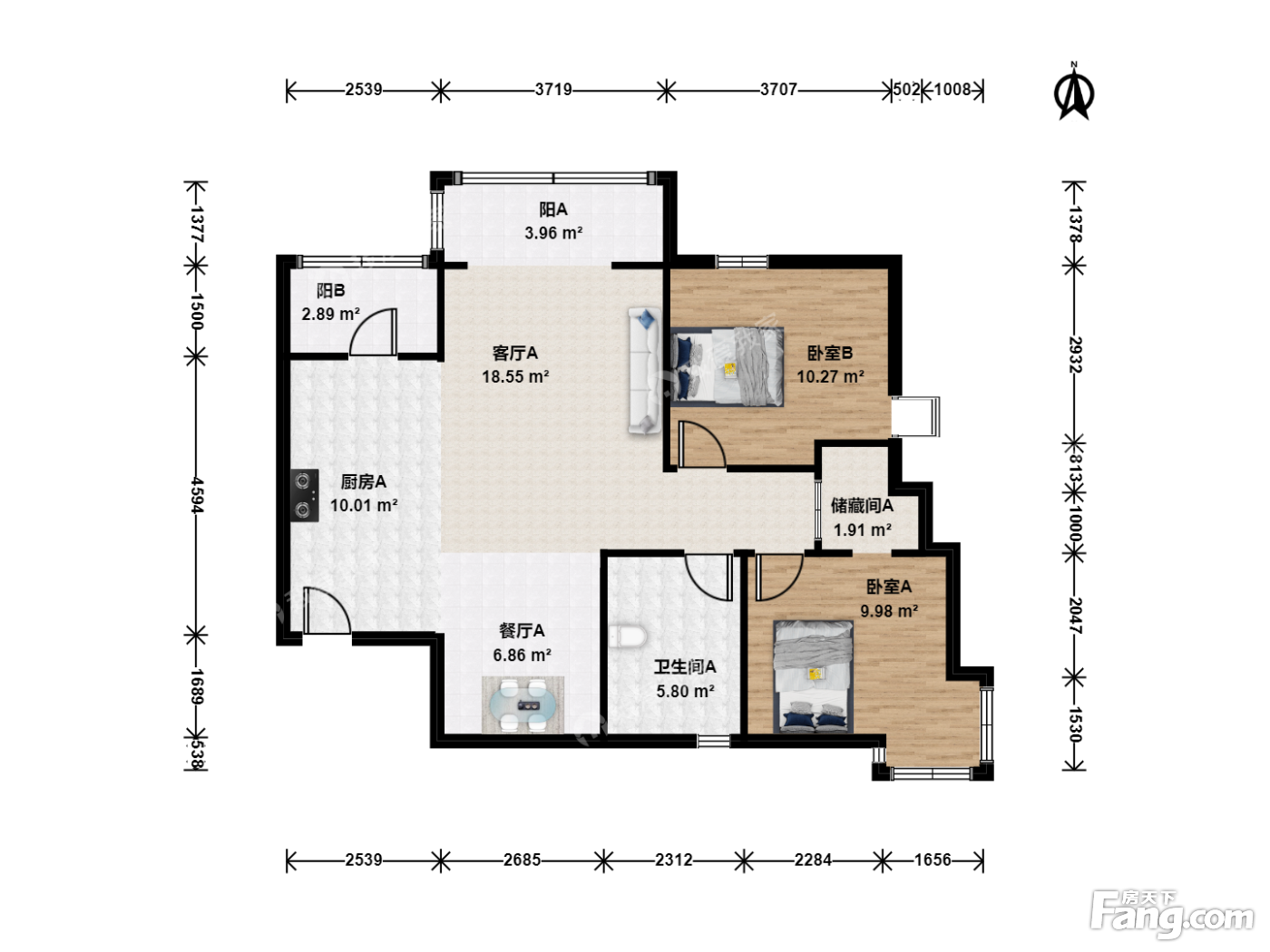 户型齐全,主打客厅朝南,双阳台,主卧朝南二居