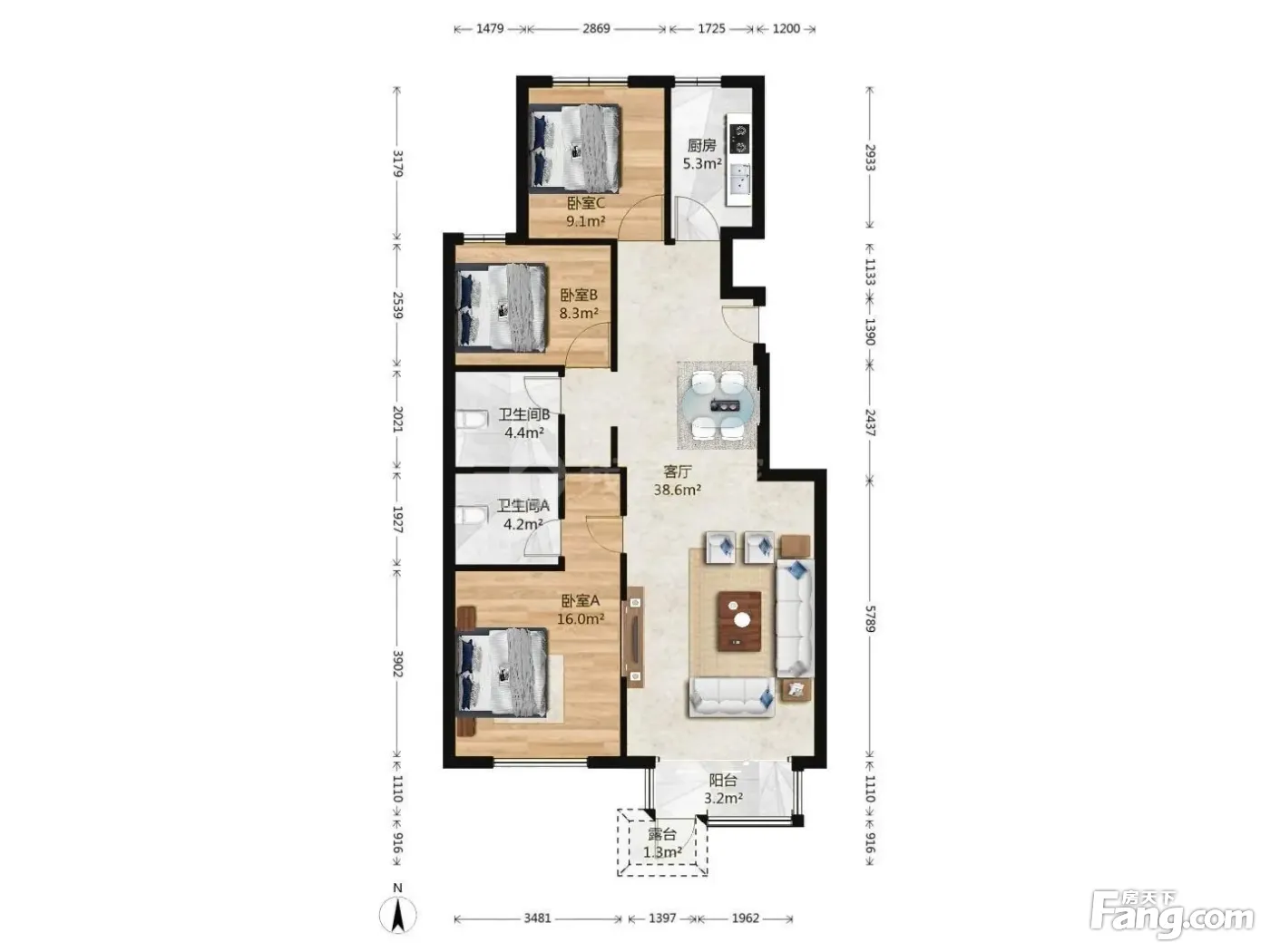 3室1厅2卫