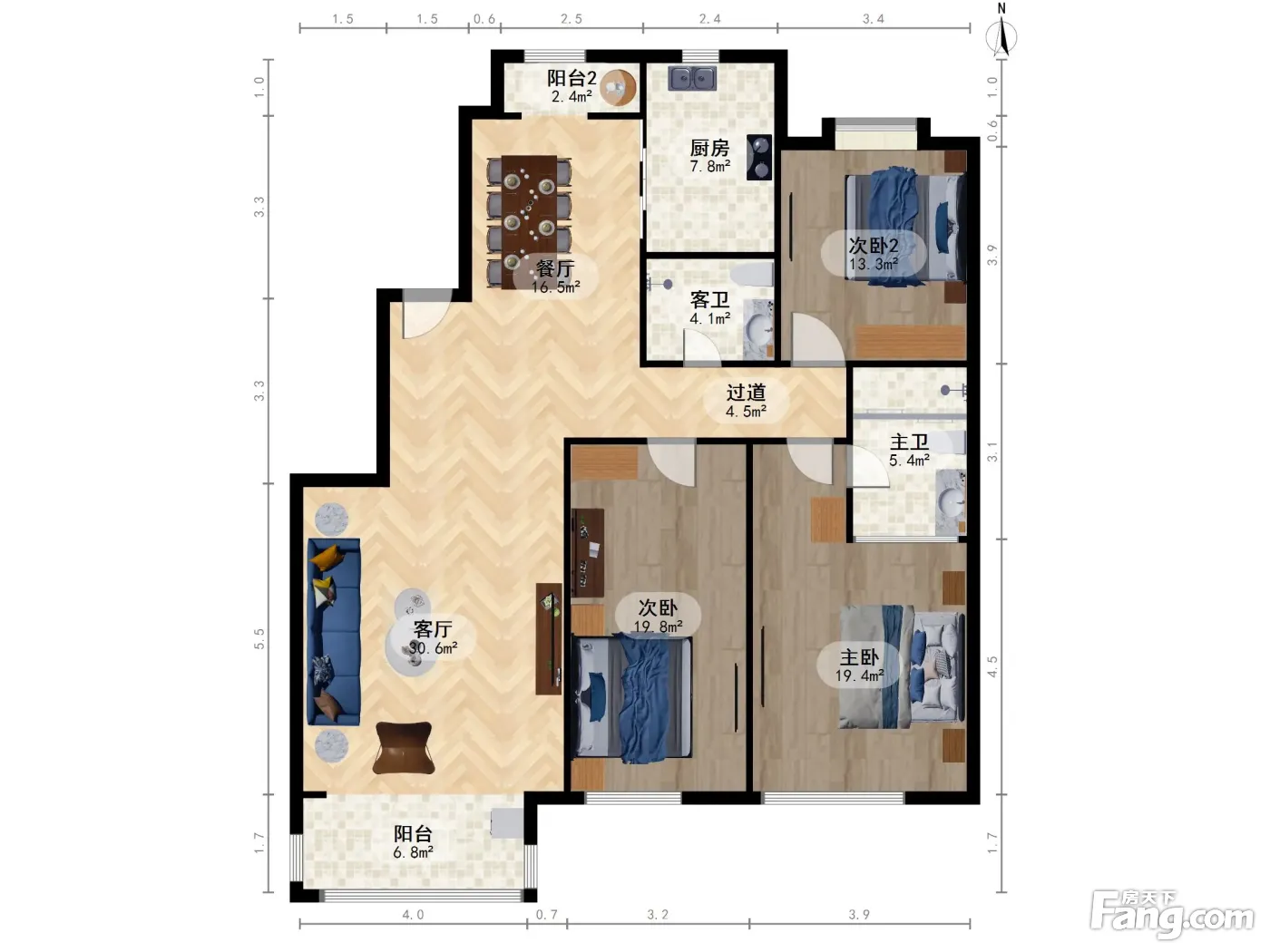 北京华侨城2号院 3室1厅 南 北
