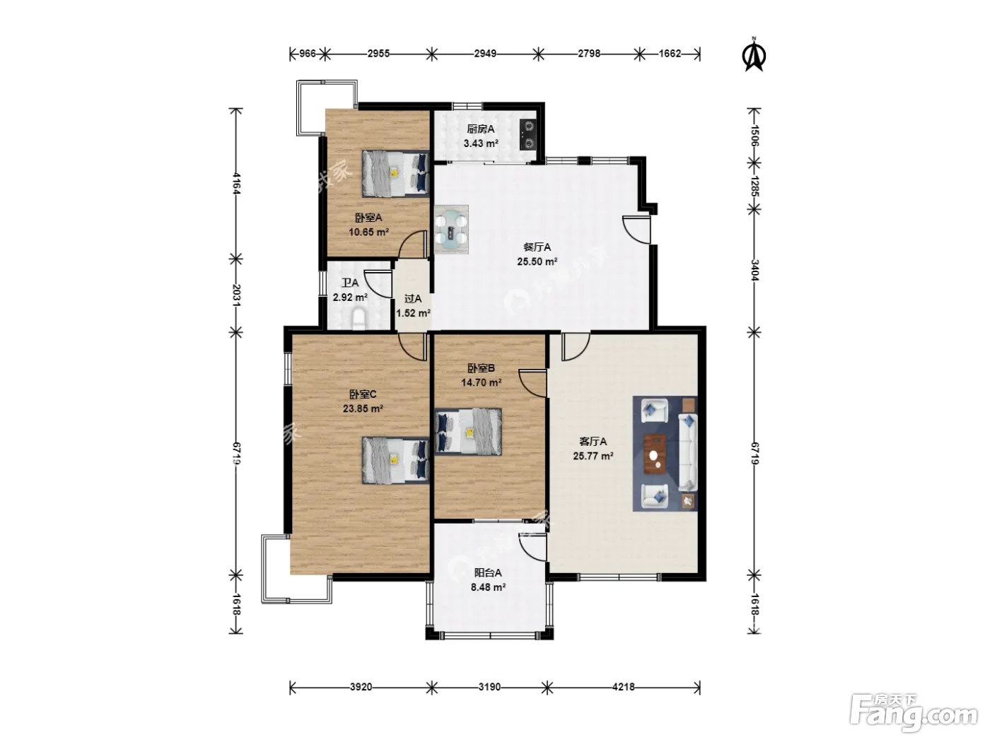 户型齐全,主打户型方正,明卫,客厅朝南,双阳台三居