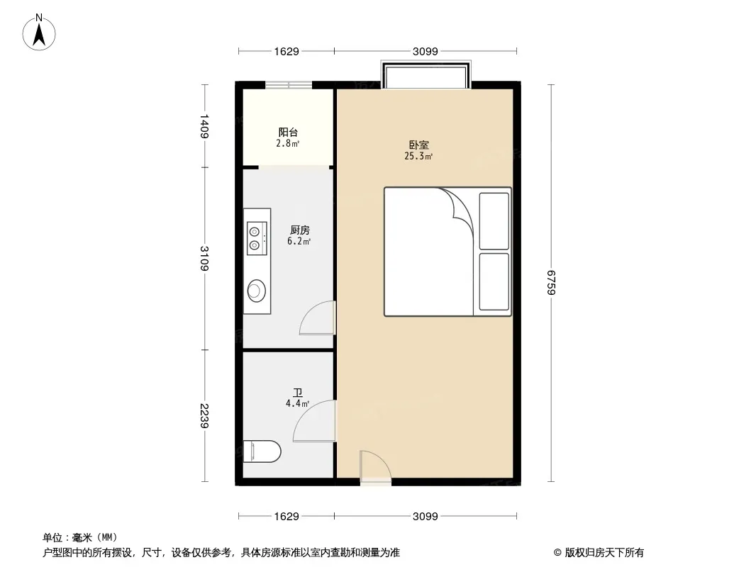 户型齐全,主打客厅朝南,主卧朝南一居