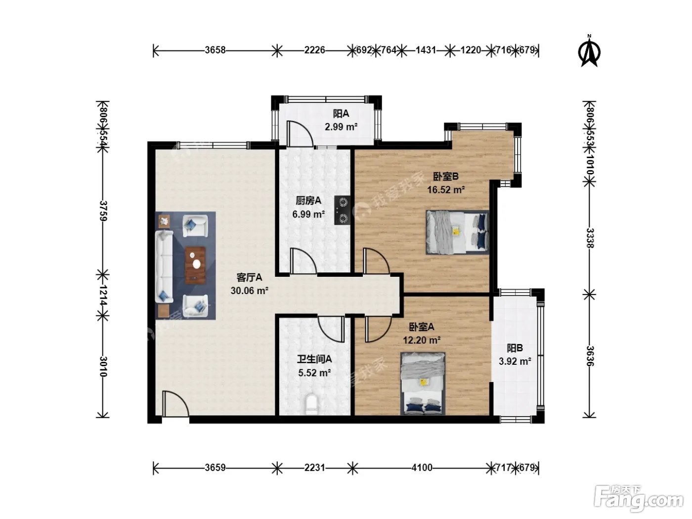 户型齐全,主打户型方正,双阳台,主卧朝南二居