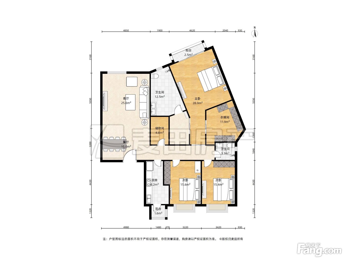 户型齐全,主打户型方正,独立衣帽间,明卫,客厅朝南三居