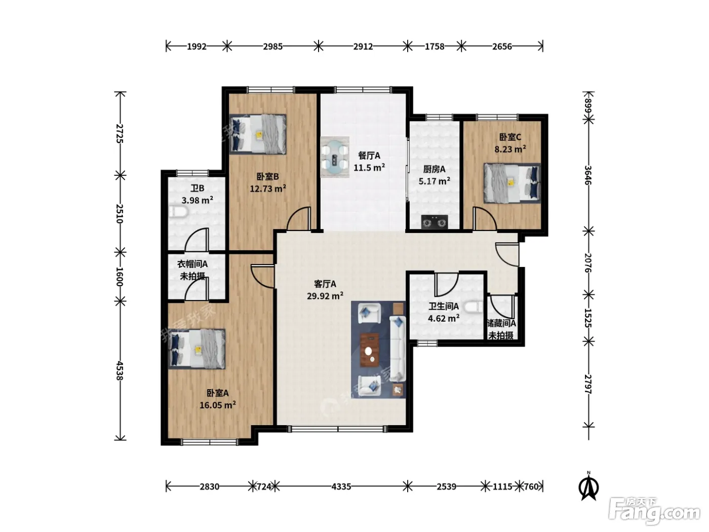 户型齐全,主打户型方正二居