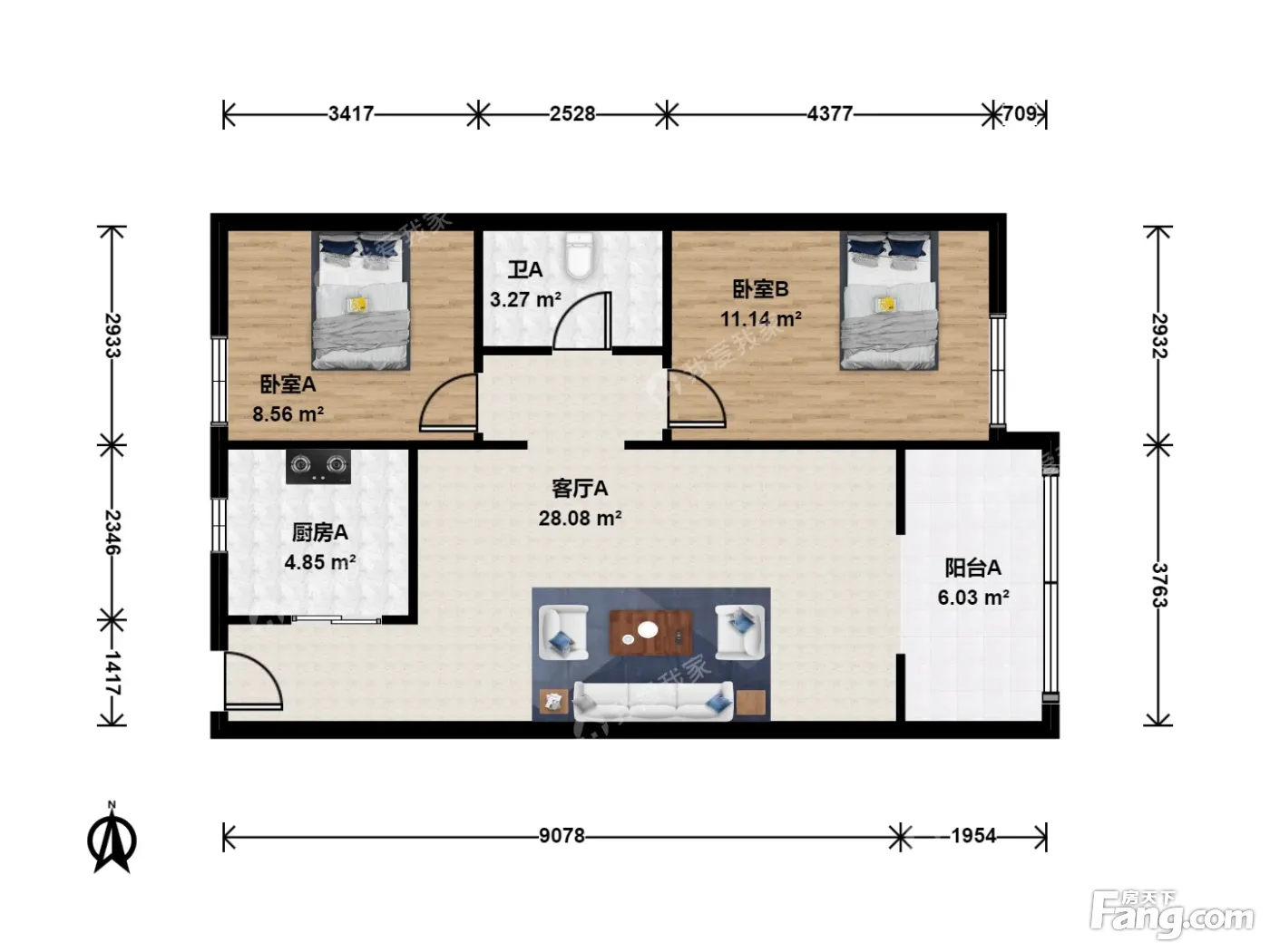 户型齐全,主打户型方正二居