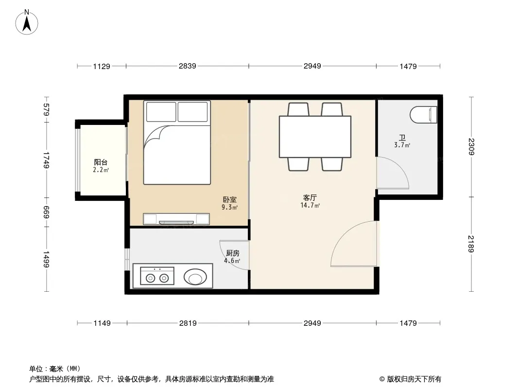 户型齐全,主打户型方正,明厨,客厅朝南一居