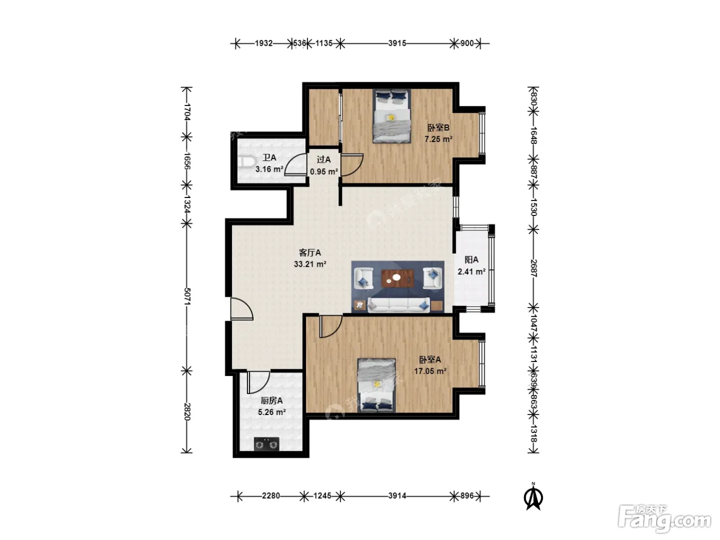 户型介绍:两个卧室和客厅并列朝东,客厅在两个卧室中间,布局非常合理没有多余浪费面积,正对小区花园,采光好没遮挡