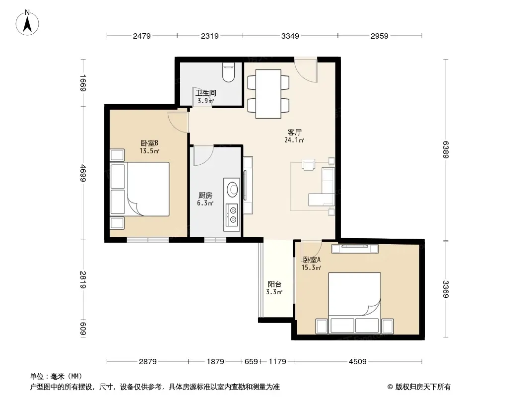 户型齐全,主打户型方正,明厨,客厅朝南二居