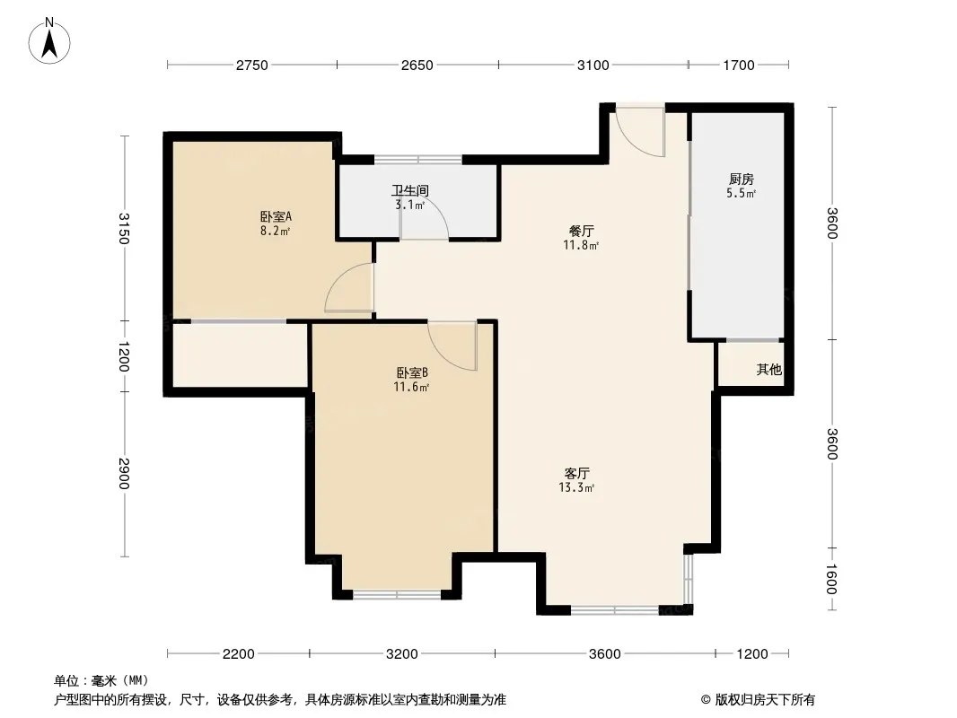 首开住总熙悦安郡两居室中高楼层没有遮挡窗户大