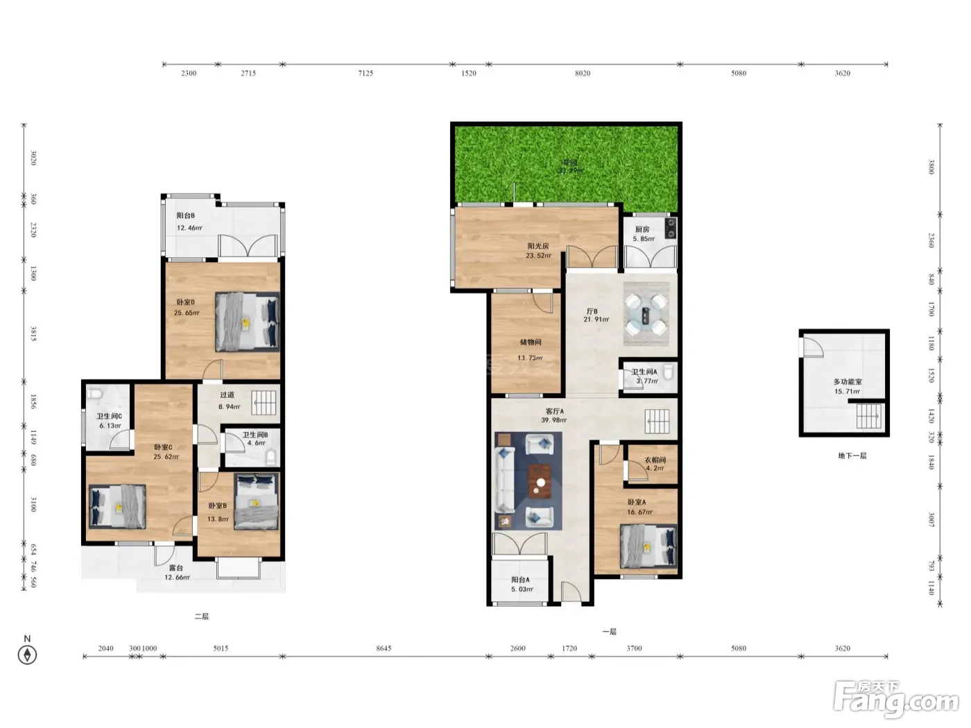 南北通透,格局方正下叠别墅,精装修拎包即住