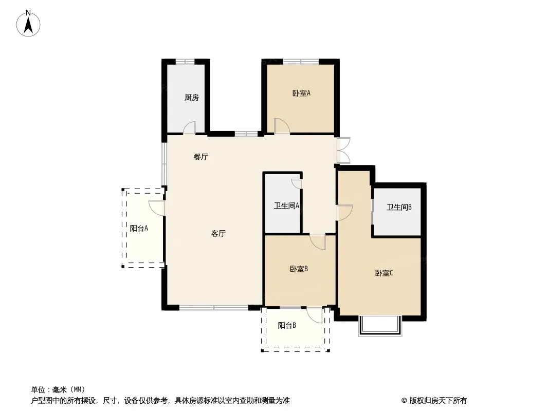 户型齐全,主打南北通透,客厅朝南,开放厨房三居