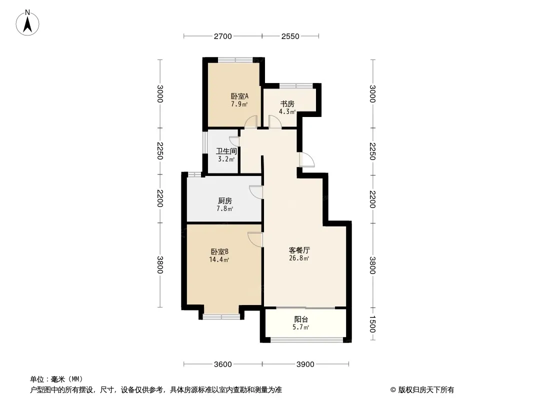 户型齐全,主打南北通透,采光充足三居