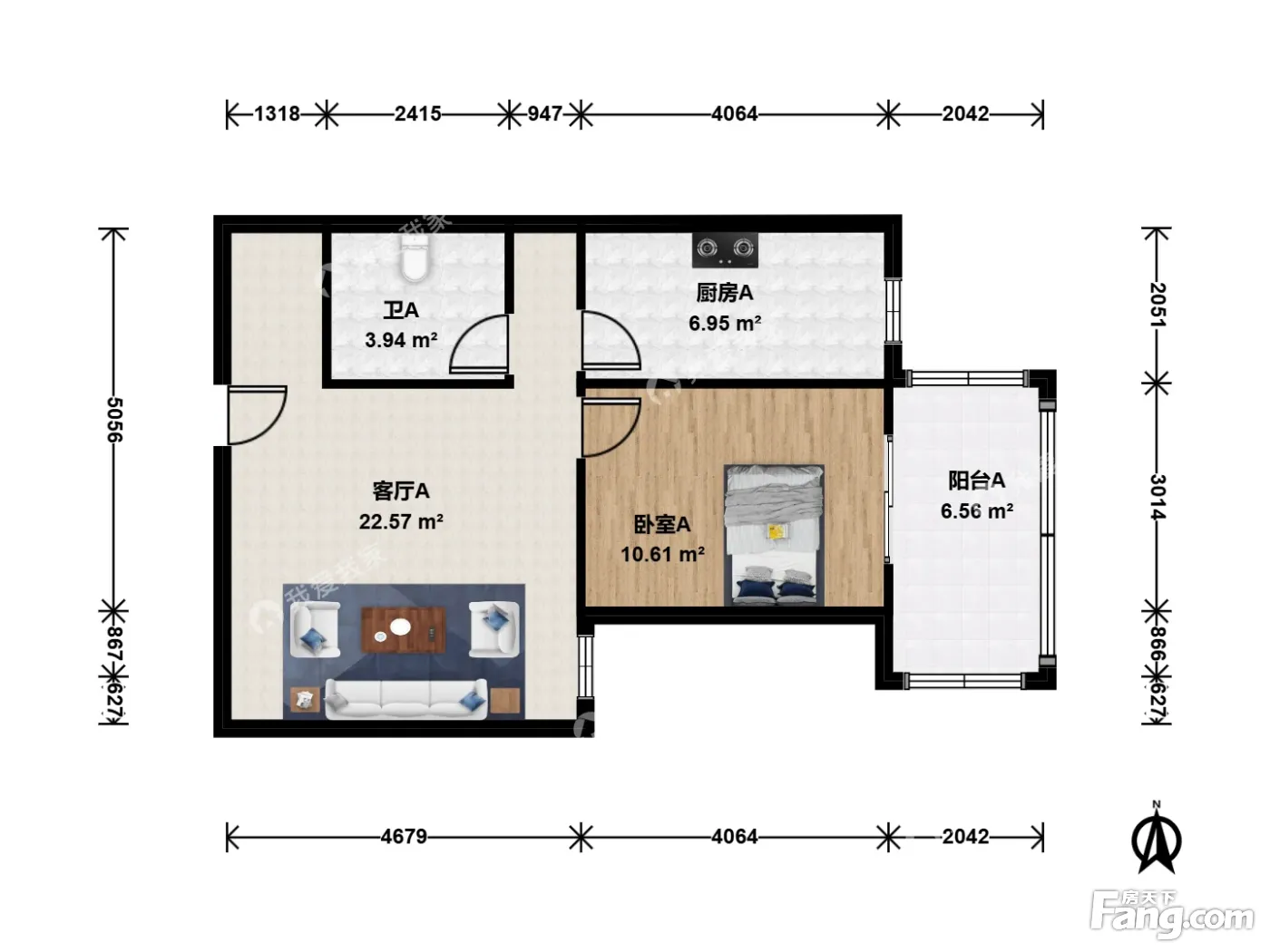 户型齐全,主打明厨,客厅朝南一居