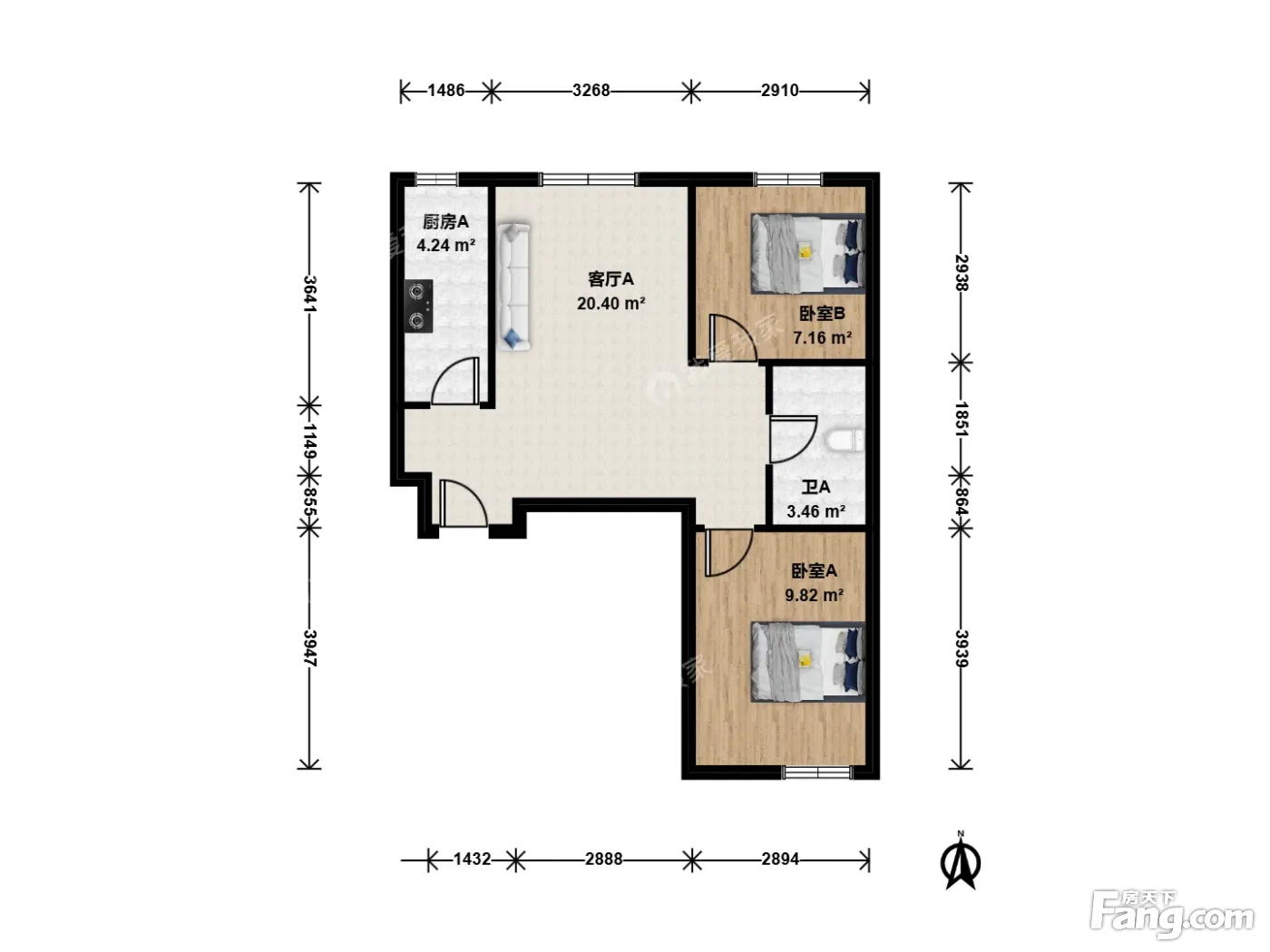 户型介绍:此房户型为2室1厅1卫,建筑面积为73.58平米,朝向为南北。