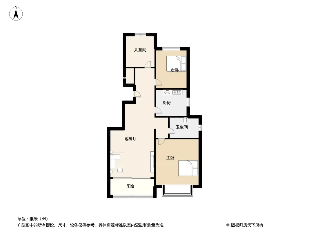 北京恒大上河院一期 3室1厅 南 北