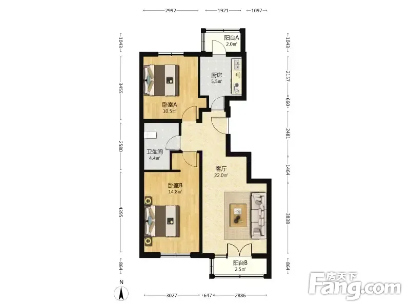 双河北里尚城 2室1厅 南 北