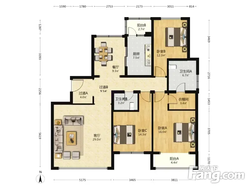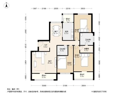 户型齐全,主打户型方正,独立衣帽间,明卫三居